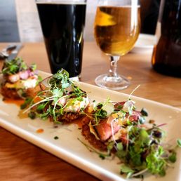 Wow. I thought this was more of a pub and focused on beer, so it took me a disappointingly long time to check it out. We picked this for brunch, in part due to the proximity to TJMaxx for an after lunch shopping spree. But the brunch is solid. There were several non-sweet options. I had the chicken and waffles and ate the whole thing, no regrets. The watermelon salad on the side was a really nice addition. And the fried green tomatoes - also really good. Brunch is solid and I'd come back for their evening menu!